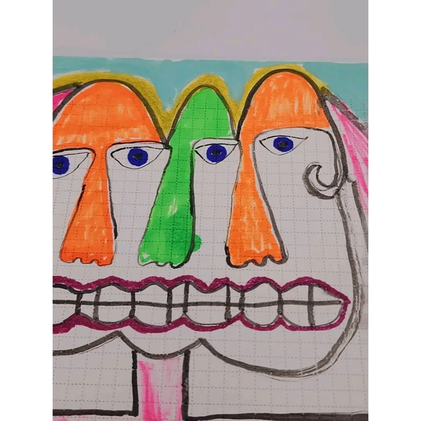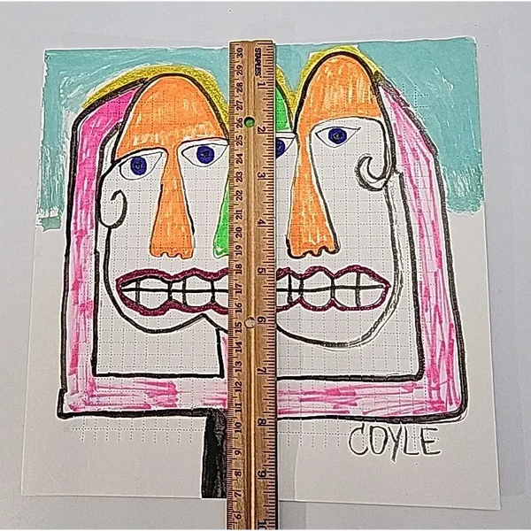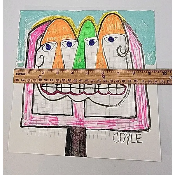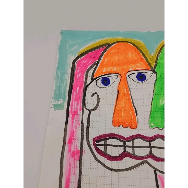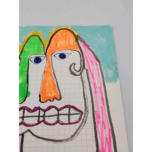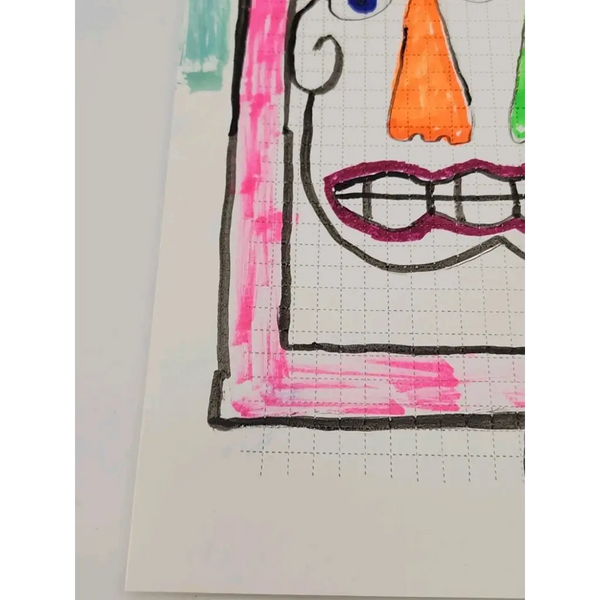 The artist used India inks and paint markers on perforated blotter paper making this a one of a kind piece of art